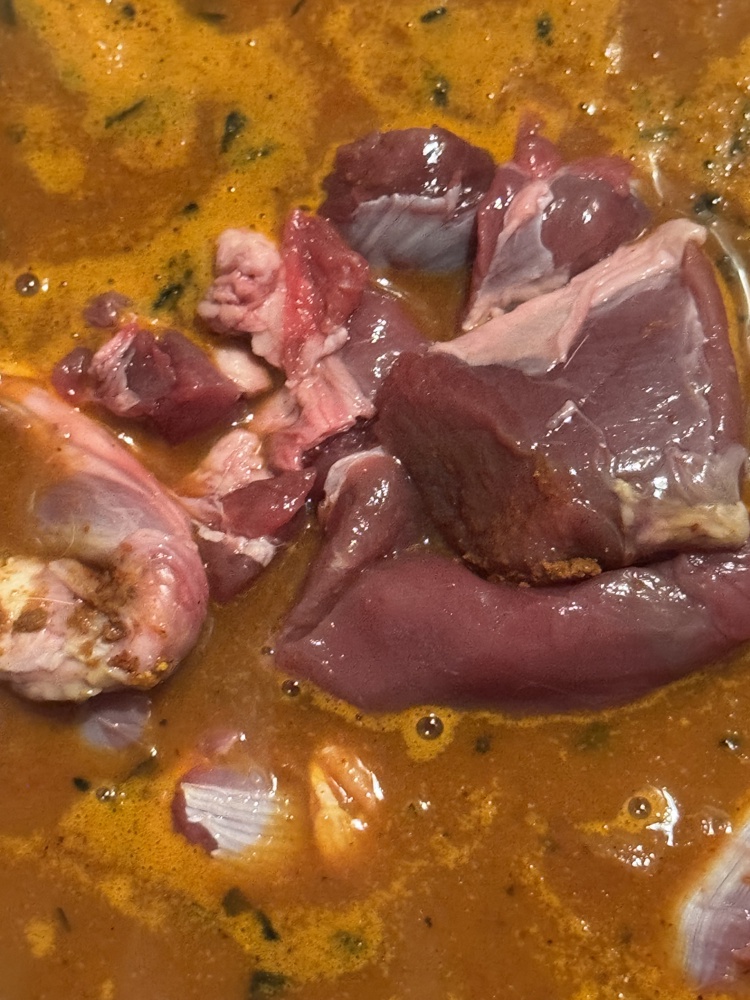 コリアンダー、ターメリック、チリパウダーの3種のスパイスとトマト缶と玉ねぎを使う普段作っている感じの要領で作った。 スパイスカレーはスパイスカレーの教科書という本で作り方を学んだのでそれを踏襲している。 普段鶏もも肉で作るカレーと同等のレベルで美味しくいただくことができた。