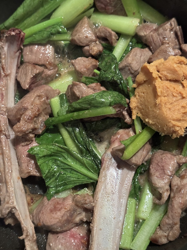 野菜炒めがワイルドすぎたので、次は味噌で炒めてみることにした。若干くさみが消えた感じがして美味しかった。